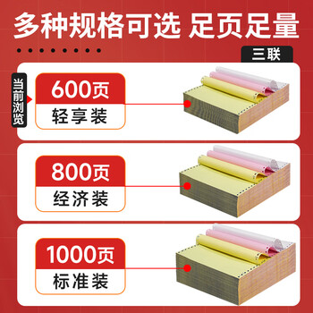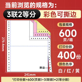 天章 (TANGO)【缺页十倍赔】天章风三联二等分可撕边针式电脑打印纸 出入库送货单600页241-3-1/2S彩色(白红黄)
