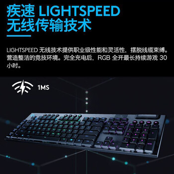 罗技(G)G913 LIGHTSPEED RGB 无线机械游戏键盘(Clicky青轴) 无线超薄RGB矮轴 (C轴)类青轴手感