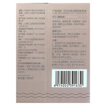优沃朵轻透美肌粉底液C01 (嫩肤色)