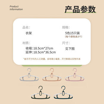 可伸缩儿童衣架 5色 15只装