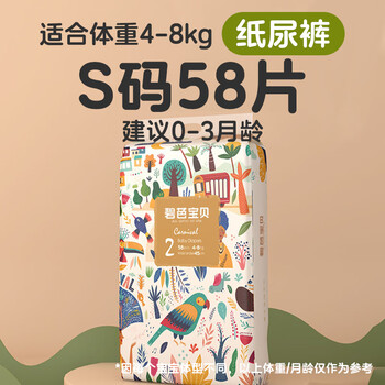 碧芭宝贝丛林狂想曲纸尿裤S码58片(4-8kg)尿不湿超薄透气新生儿小号