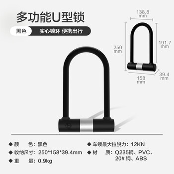运动户外---骑行运动---自行车配件京东京造多用途U型锁