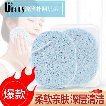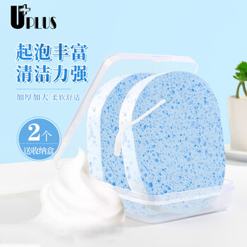 优家(UPLUS)加厚加大蚕网木浆洗脸扑洁面扑洗脸棉2个含收纳盒 洗脸海绵