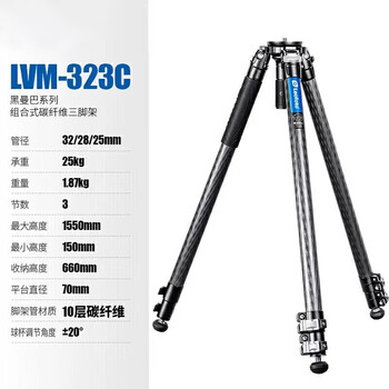 徕图(Leofoto)三脚架 黑曼巴系列微单反相机专业摄像碳纤维调节水平三脚架 LVM-323C(单脚架)