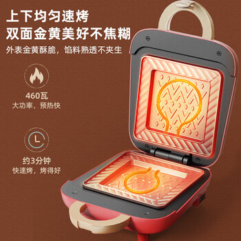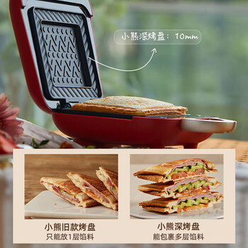 小熊(Bear)早餐机 三明治机家用早餐机华夫饼机电饼铛一人食双面压烤机烤吐司机SMZ-B05N1