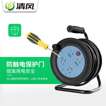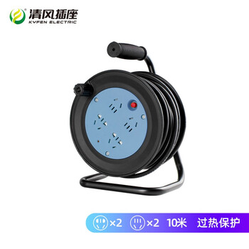 清风(kyfen)家用迷你移动式电缆卷盘四位长线插排过热保护 全长10米