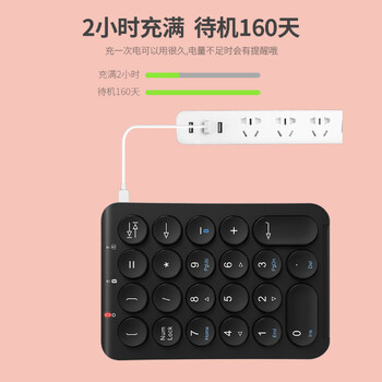 B.O.W航世 HB159蓝牙数字小键盘 迷你键盘 复古圆帽 18键 笔记本台式通用键盘 可充电蓝牙键盘 黑色