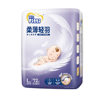 菲比Fitti柔薄轻羽婴儿纸尿裤L72片(9-14kg)尿不湿柔感轻羽层柔软轻薄