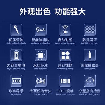 麦克风*1、接收器*1、防滑圈*1、防风棉*1、TYPE-C充电线*1、转接头*1、18650电池*2、说明书*1