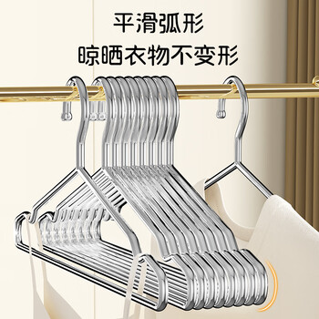 晟旎尚品实心不锈钢衣架加粗加大晾晒衣架子无痕衣服挂架撑子40cm10只装