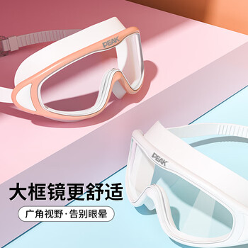 匹克成人游泳镜男女高清防雾防水大框一体专业潜水游泳眼镜色光粉白