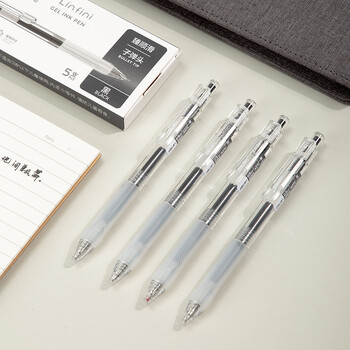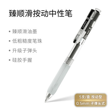 得力(deli)【热门商品】臻顺滑按动中性笔无印风签字笔 学生刷题笔 ins风0.5mm子弹头5支/盒A575