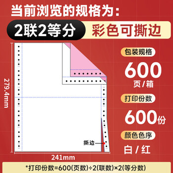 天章 (TANGO)【缺页十倍赔】天章风二联二等分可撕边针式电脑打印纸 出入库送货单600页 241-2-1/2S 彩色(白红)