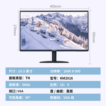 康佳(KONKA)19.5英寸显示器 快速响应不延迟 可壁挂 出厂校色 VGA 办公监控液晶电脑显示屏 KM2016