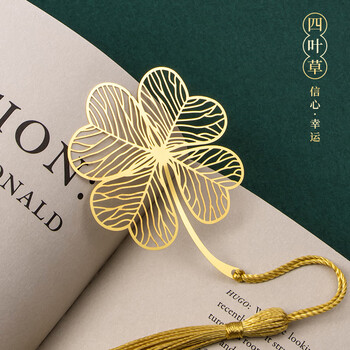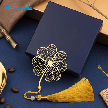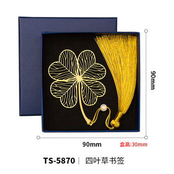 天色四叶草黄铜叶脉书签礼盒 中国风伴手礼教师节礼物 金属纪念礼物男女老师生日新年会礼品TS-5870