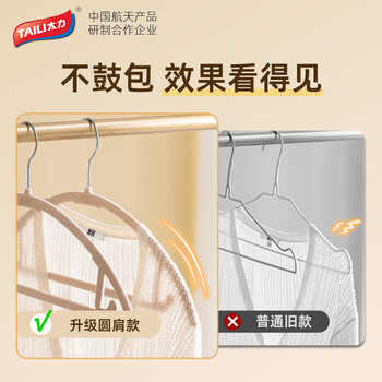 太力植绒衣架圆肩衣架无痕衣柜衣架衣挂晾衣架防滑衣服架杏色10只