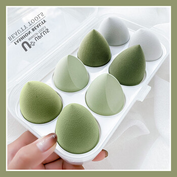 优家(UPLUS)牛油果绿美妆蛋不吃粉化妆粉扑鸡蛋盒粉扑套装8个含收纳盒