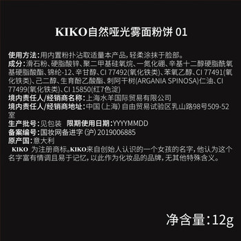 KIKO自然哑光雾面粉饼-01自然色12g/盒 遮瑕定妆送女友女神节礼物