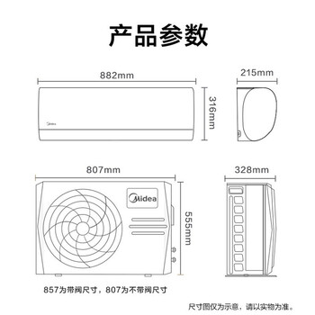 内机机身尺寸 宽882mm;高316mm;深215mm