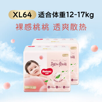 好奇(Huggies)铂金装小桃裤纸尿裤XL64片(12-17kg)加大号尿不湿【透爽散热】