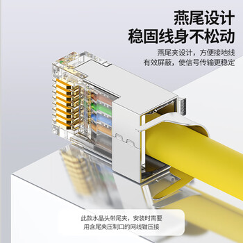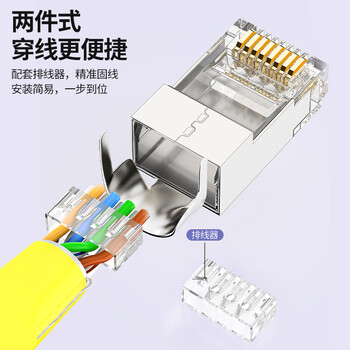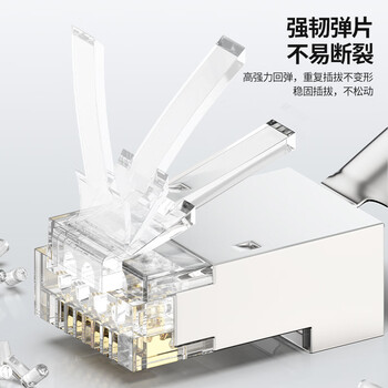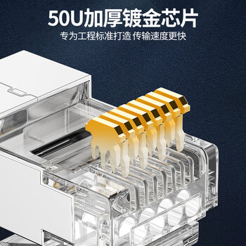 CNCOB七类水晶头50U镀金工程级cat7类网线1.45mm线孔屏蔽铜壳尾夹两件式超七类水晶头 30颗装