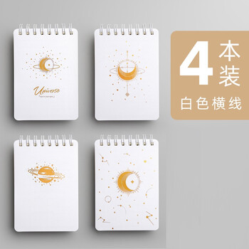 金值 白色星空线圈本/4本装 A7小笔记本子便携式记事本学生随身携带迷你口袋本随手记单词本小号记录