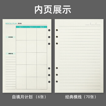 嘉然恒 活页本替换内芯活页纸笔记本本子横线加厚替芯A5/6孔内芯80张/本 A5含月计划升级款横线内芯1本