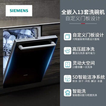 西门子(SIEMENS)13套大容量 5D智能智能洁净 洗碗机 门板另购 全嵌式 SJ636X03JC