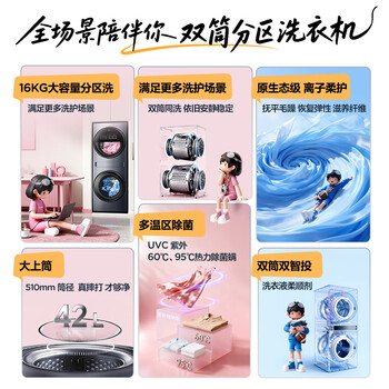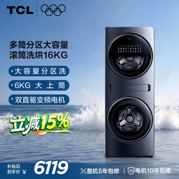TCL双子舱Q10滚筒洗衣机全自动洗烘一体16KG大容量子母多筒分区家电G160Q10-HDY