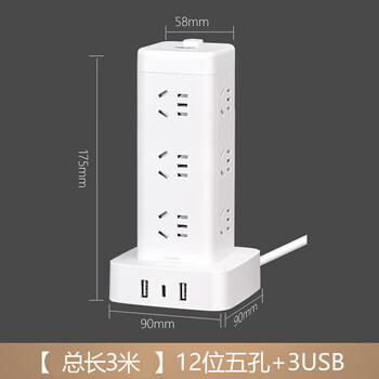 德力西(DELIXI)立式插座/插排/排插/插线板/插板/接线板/拖线板 12位五孔USB+TYPE-C总控开关3米过载保护