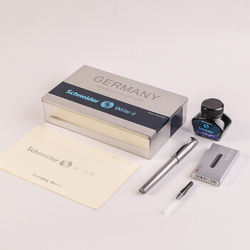 施耐德(Schneider)【礼物】德国进口直液式钢笔墨水礼盒套装男女礼物EF尖商务办公礼品克里普斯电镀灰6284
