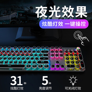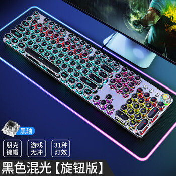 前行者(EWEADN)TK100朋克机械键盘电竞游戏有线台式电脑笔记本外接办公打字复古外设吃鸡104键 黑色混光黑轴