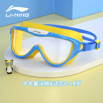 李宁(LI-NING)儿童泳镜男童女童防水防雾游泳镜高清潜水防护镜LSJR701-1蓝黄