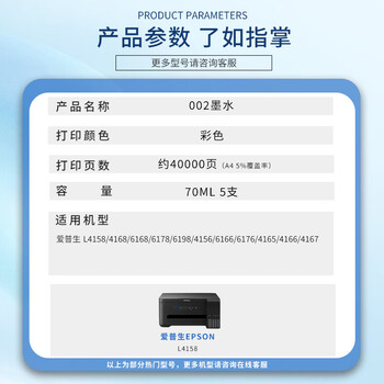 新绿天章适用爱普生epson 002墨水 L4168 L4166 L6178 L4158墨水1119 L3188 L4169 L4266 L4268打印机墨水