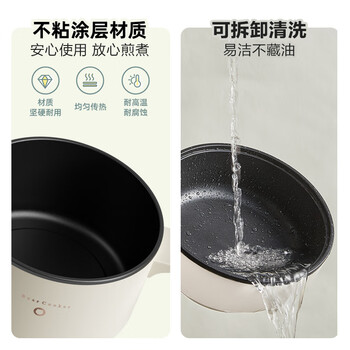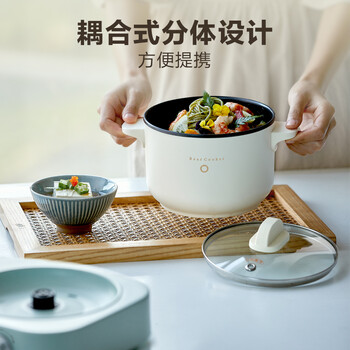 小熊(Bear)双灶电煮锅 电炒锅 多功能电火锅分体式煎炒焖煮料理锅宿舍用小煮锅 电热锅 E12J1配蒸笼