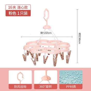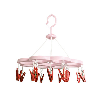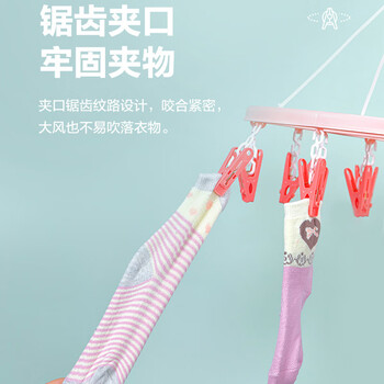 茶花 晾衣夹 衣架带夹子圆形晾衣架 晒袜子架(16夹子)袜架挂架 1只