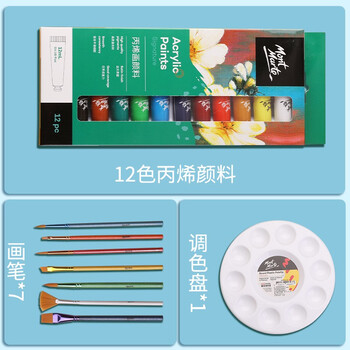 蒙玛特(MontMarte)丙烯颜料12色diy防水颜料丙烯盒装画石头画不掉色初学画鞋子V美育工具