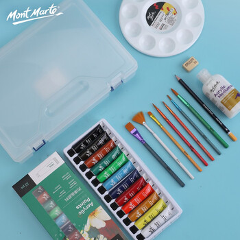 蒙玛特(MontMarte)丙烯颜料12色diy防水颜料丙烯套装盒装画石头画不掉色儿童涂鸦收纳盒套装V美育工具