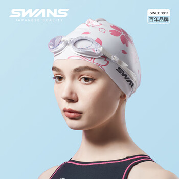 SWANS泳镜日本进口防水防雾高清平光游泳眼镜女泳帽男专业二件套 黑白