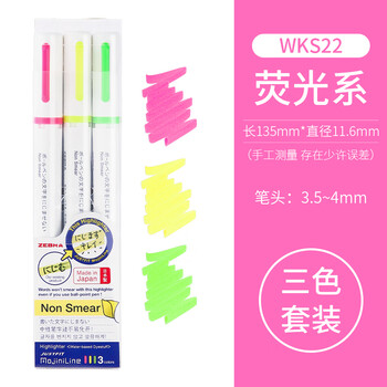 斑马牌(ZEBRA)淡色单头荧光笔 MojiniLine系列不易晕染手帐笔 学生标记笔记号笔 WKS22 3色装
