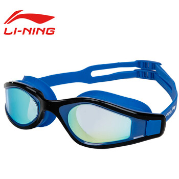 李宁(lining)泳镜男女成人高清防水雾大框电镀游泳镜LSJN598-2黑蓝