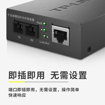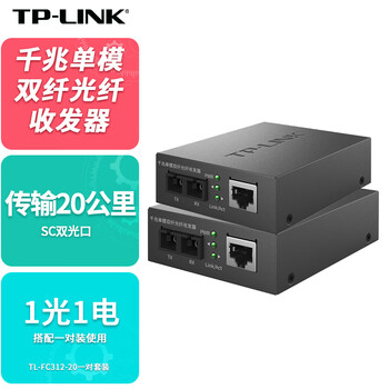 普联(TP-LINK)千兆单模双纤光纤收发器20公里2光1电光电转换器1310nm波长SC接口双芯TL-FC312-20一对套装