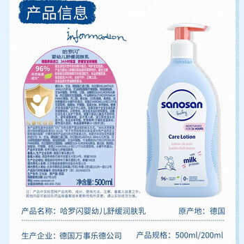 【京东自营】哈罗闪(sanosan)德国原装进口婴儿柔润护肤乳200ml宝宝柔润护肤身体乳 保湿防干燥