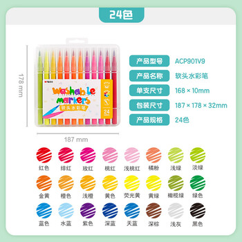晨光(M&G)文具24色圆形笔杆软头水彩笔 儿童可水洗大容量创作画笔 PP盒装涂鸦画笔 24支/盒ACP901V9