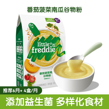 小皮(Little Freddie)有机高铁米粉番茄菠菜南瓜多谷物味160g*1盒 益生菌宝宝婴儿辅食