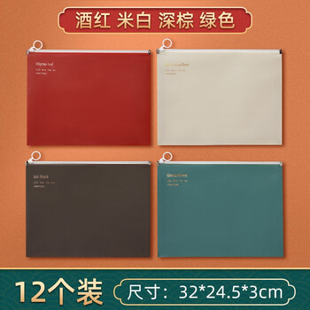 文谷(Wengu)韶华复古彩色12只装A4拉链袋档案袋办公资料袋试卷票据收纳袋办公用品LBD-087-12