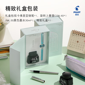 百乐(PILOT)Cavalier卡佛里亚钢笔墨水套装礼盒成人学生书写练字 FCAN3SRLBM M尖浅蓝