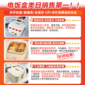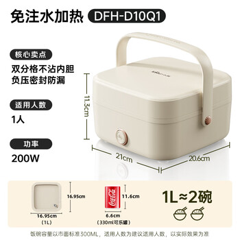 小熊(Bear)电热饭盒 加热饭盒 保温饭盒 1.0L免注水便捷式低音恒温不粘内胆分隔饭盒DFH-D10Q1