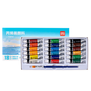 得力(deli)丙烯颜料18色5ml初学入门套装画画丙烯画改鞋写生黑板报墙绘手绘儿童成人73914美育工具