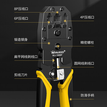 万级网线钳 网络电话水晶头压线钳 工程级8P6P4P三用超五六类网线夹线钳剥线钳多功能省力工具WJ-1688F